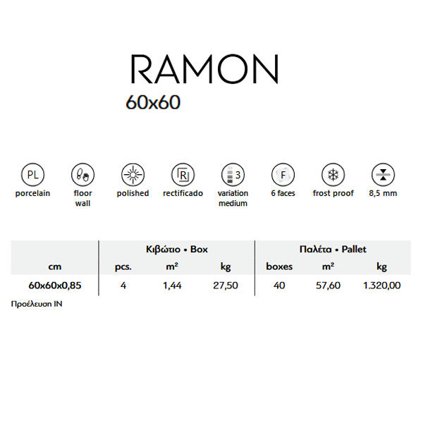 • Πλακάκι δαπέδου εσωτερικού χώρου πορσελανάτο, με full lapato γυαλιστερή επιφάνεια, rectificado, πολλαπλών τόνων