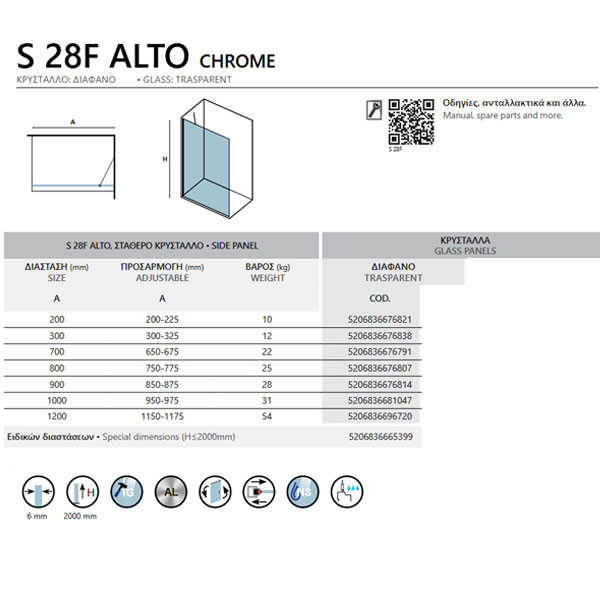 • Διατίθεται με προφίλ ανοδιωμένου αλουμινίου και κρύσταλλα διάφανα tempered 6 mm