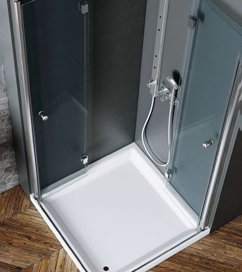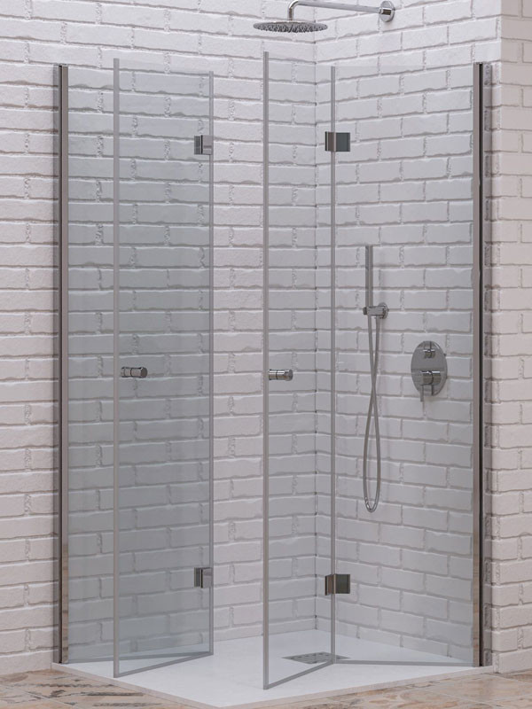 • Γωνιακή καμπίνα τετράγωνης ντουζιέρας με δύο πτυσσόμενα φύλλα 6 mm