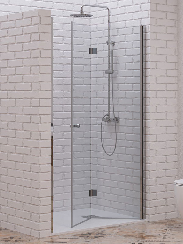 • Καμπίνα τοποθέτησης από τοίχο σε τοίχο, ιδανική για μικρούς χώρους, αποτελούμενη από δύο αναδιπλούμενα κρύσταλλα