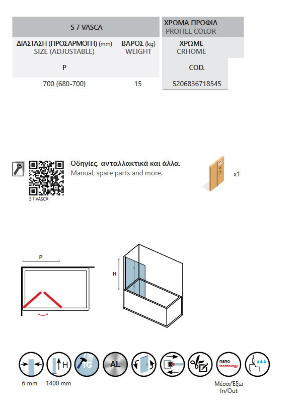 • Παραβάν μπάνιου αντιστρεφόμενο, αποτελούμενο από δύο αναδιπλούμενα κρύσταλλα
