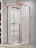 • Τετράγωνη καμπίνα γωνιακής τοποθέτησης βαρέως τύπου συρόμενη, με δύο σταθερά φύλλα και δύο συρόμενες πόρτες, σε rose gold