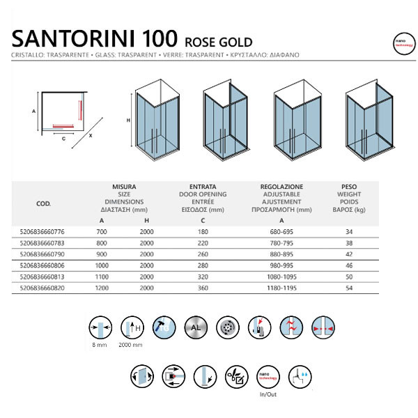 • Η καμπίνα Santorini 100 Rose Gold διατίθεται και σε άλλες διαστάσεις με επιλογή