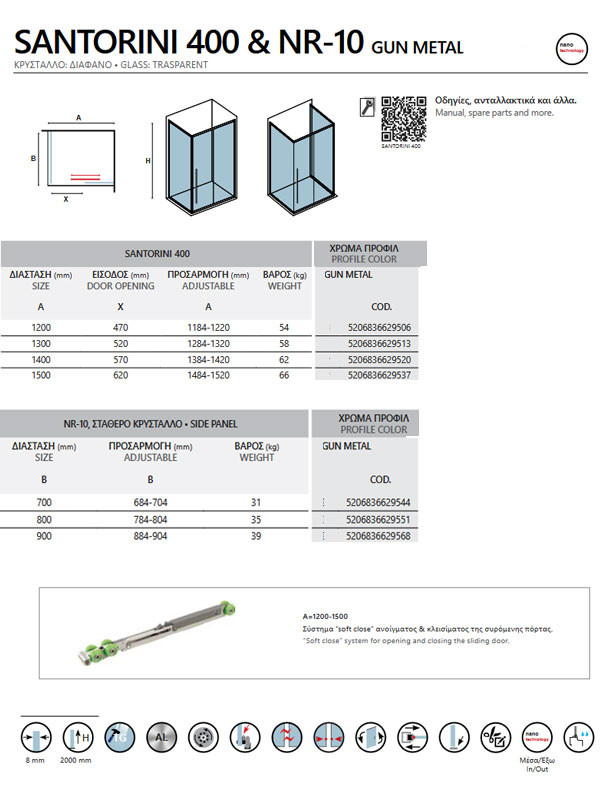 • Η καμπίνα Santorini 400 & NR-10 Gun Metal διατίθεται και σε άλλες διαστάσεις με επιλογή