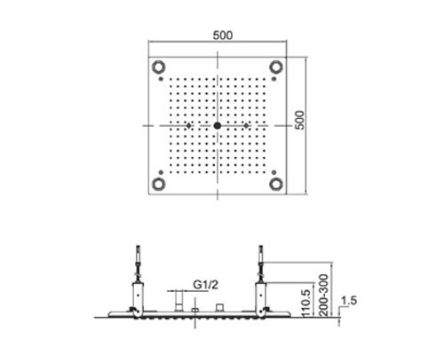 • Εντοιχιζόμενη τετράγωνη κεφαλή ντους οροφής, με Led φωτισμό από ανοξείδωτο ατσάλι 304 18/10