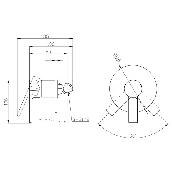 • Επιτοίχιος μίκτης εντοιχισμού σε χρώμιο
