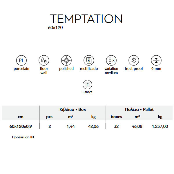 • Κιβώτιο: 1,44 τ.μ (2 Τεμάχια)