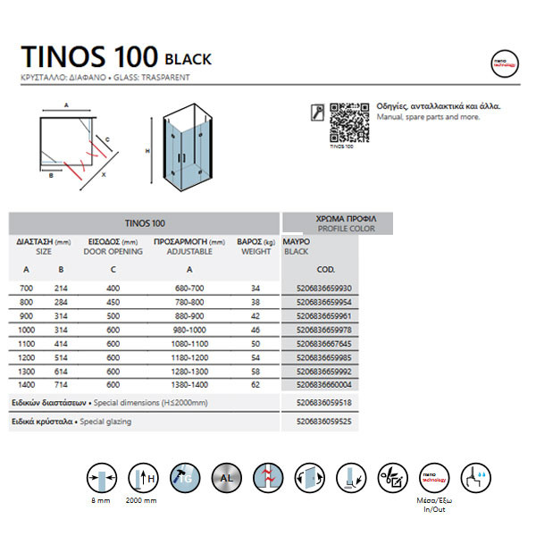 • Η καμπίνα Tinos 100 Black διατίθεται και σε άλλες διαστάσεις με επιλογή