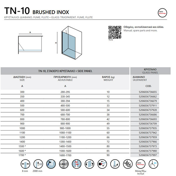 • Η καμπίνα TN-10 Brushed Inox προσφέρεται και σε άλλες διαστάσεις με επιλογή
