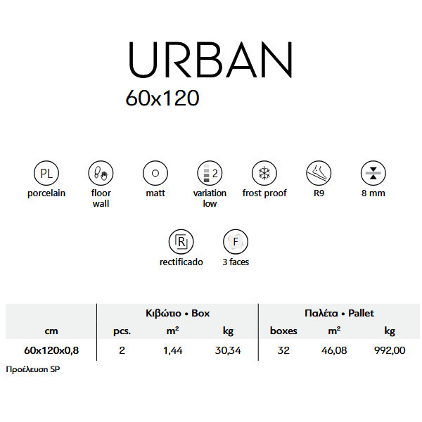 • Πλακάκι δαπέδου εξωτερικού χώρου πορσελανάτο, με ματ επιφάνεια Rectificado, ανθεκτικό στον παγετό