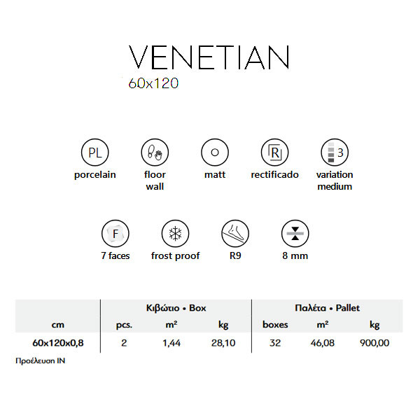 • Πλακάκι εσωτερικού δαπέδου πορσελανάτο, rectificado πολλαπλών τόνων με ματ επιφάνεια