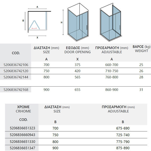 Κατηγορία: Καμπίνες Ντουζιέρας Τετράγωνες
