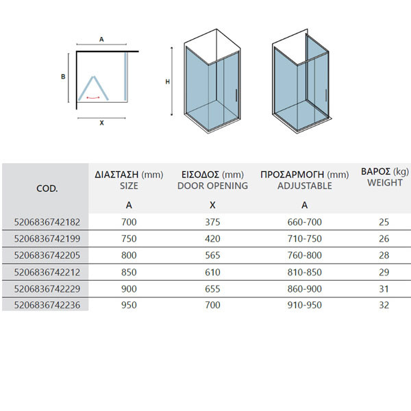 Κατηγορία: Πόρτες - Καμπίνες Ντουζιέρας Τοίχο - Τοίχο