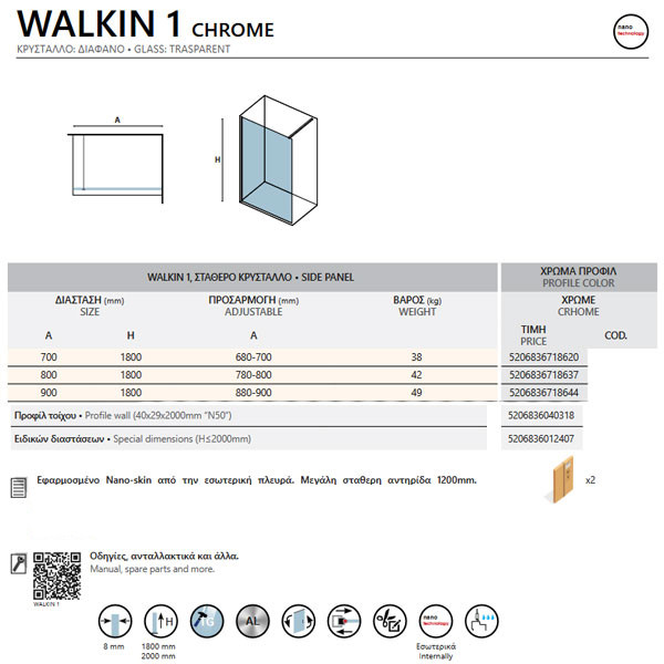 • Η καμπίνα Walkin 1 Chrome προσφέρεται και σε άλλες διαστάσεις με επιλογή