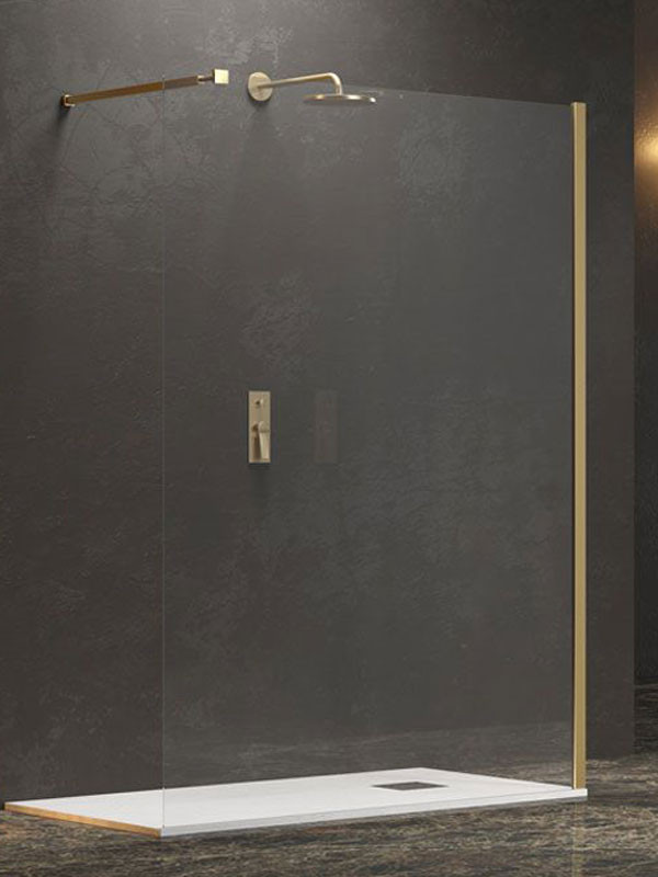 • Διατίθεται με προφίλ ανοδιωμένου αλουμινίου χρυσό ματ και κρύσταλλα διάφανα tempered 8 mm
