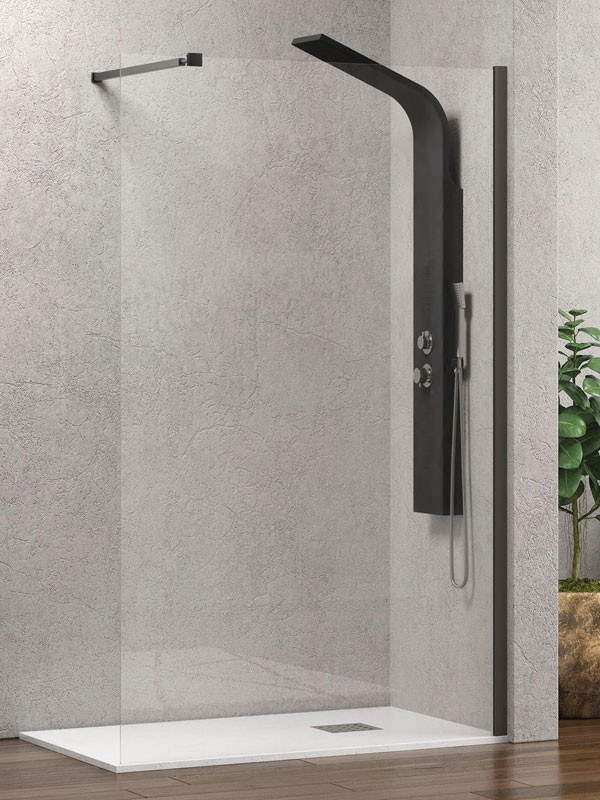 • Διατίθεται με προφίλ ανοδιωμένου αλουμινίου gun metal και κρύσταλλα διάφανα tempered 8 mm