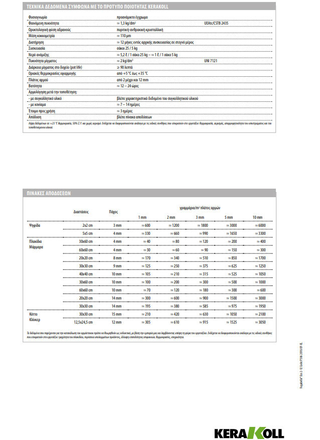 • Το προϊόν διατίθεται σε πολλές αποχρώσεις με επιλογή • Η τιμή του προϊόντος αναφέρεται σε σακί 5 Kg
