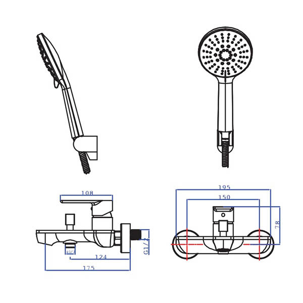 • Περιλαμβάνονται: άθραυστο σπιράλ μεταλλικό 1,5 m, τηλέφωνο ντους 3 ροών & στήριγμα τοίχου