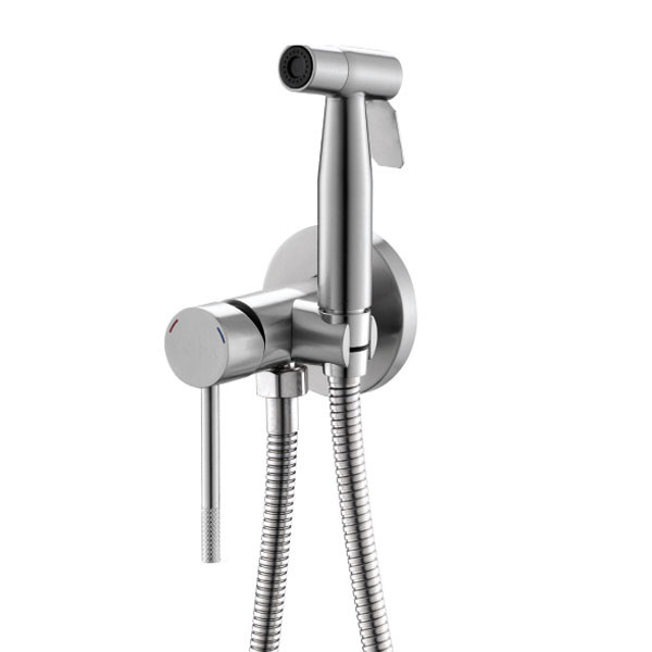• Εντοιχιζόμενος μίκτης ζεστού - κρύου 1 οπής, για πλύση υγιεινής ή καθαρισμό λεκάνης, από inox 304 18/10 σε brush nickel