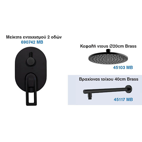 • Εντοιχιζόμενη μπαταρία ντους, κομπλέ με μονό μίκτη