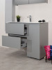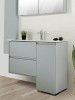 • Πάγκος δαπέδου: από μελαμίνη χρώματος Εσούζα No 19, με δύο αποθηκευτικούς χώρους, με δύο συρτάρια και ένα ντουλάπι