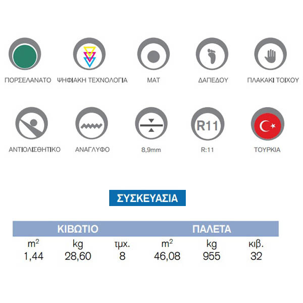 • Κιβώτιο: 1,44 τ.μ (8 Τεμάχια)