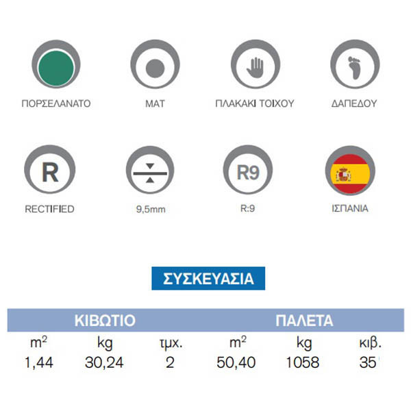• Πλακάκι δαπέδου πορσελανάτο, με ματ επιφάνεια, rectificado, R9