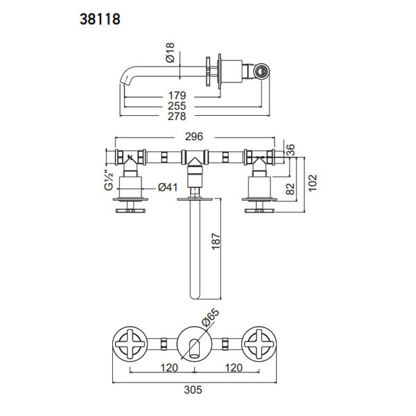 • Στόμιο εντοιχισμού νιπτήρος 18,7 cm