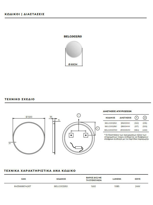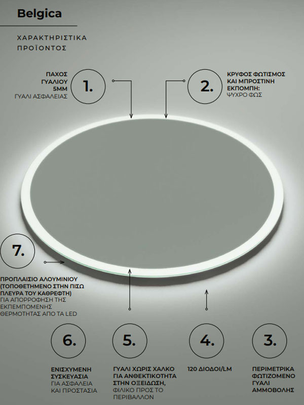 • Προπλαίσιο αλουμίνιου στην πίσω πλευρά του καθρέφτη για απορρόφηση της εκπεμπόμενης θερμότητας από τα Led