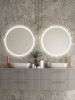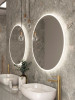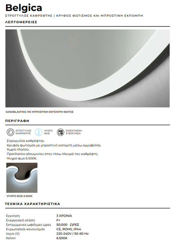 • Καθρέπτης κρεμαστός χωρίς πλαίσιο, με κρυφό φωτισμό Led περιμετρικά με μπροστινή εκπομπή μέσω αμμοβολής