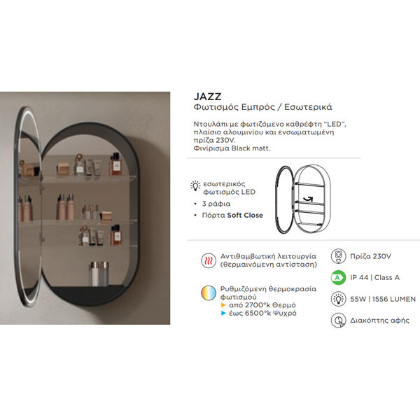 • Ντουλάπι με τρία ράφια, πόρτα Soft Close και φωτισμό LED εσωτερικά