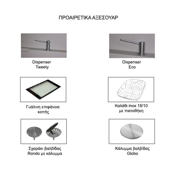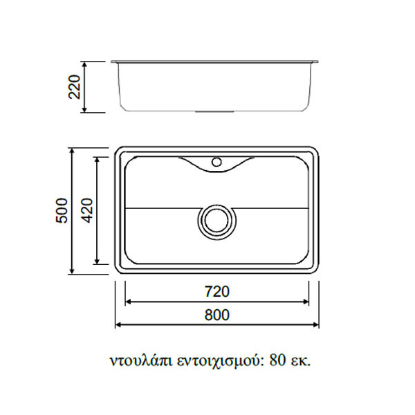 • Ένθετος ανοξείδωτος νεροχύτης πάχους 0,9 mm με λεία επιφάνεια