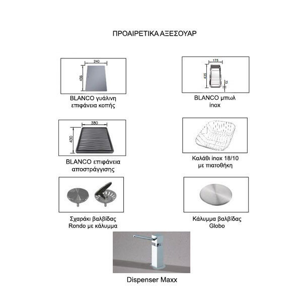 • Ένθετος ανοξείδωτος νεροχύτης πάχους 1,2 mm με λεία επιφάνεια