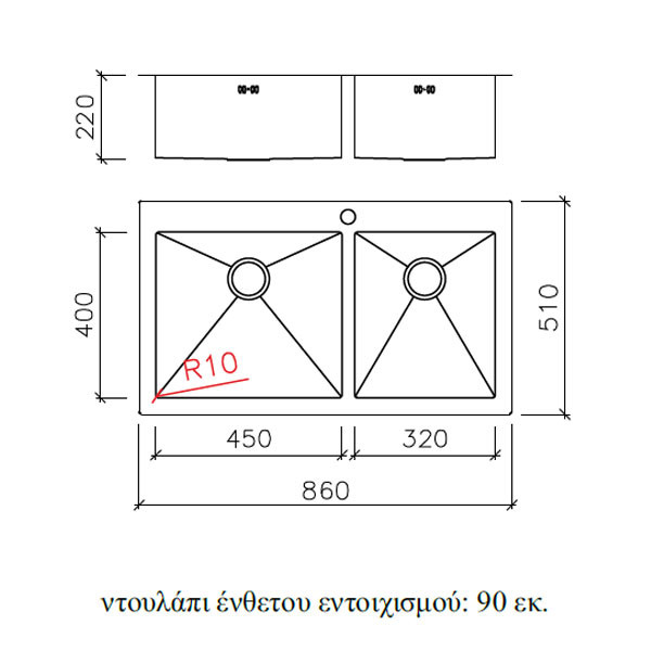 • R10: Οι γωνίες της γούρνας του νεροχύτη είναι κατασκευασμένες με καμπυλότητα για πιo εύκολο καθάρισμα