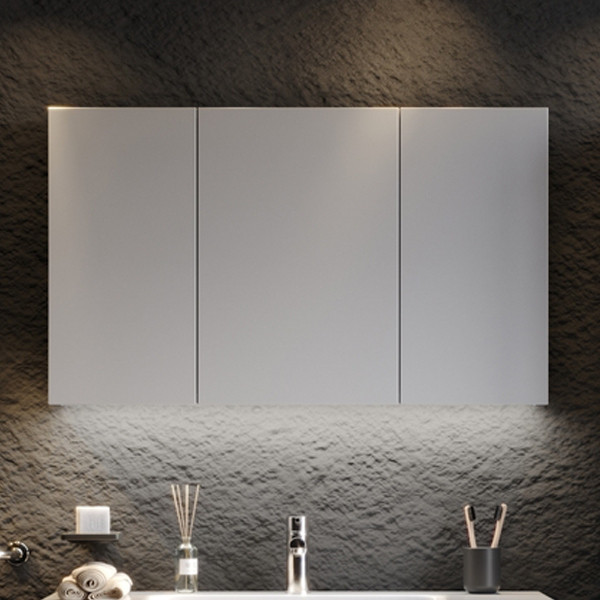 • Καθρέπτης κρεμαστός κρυφοντούλαπο: Από M.D.F. 18mm σε λάκα απαλό Μπεζ Ματ, Led φωτισμός στο πάνω μέρος, πρόσοψη καθρέφτη με τρεις πόρτες