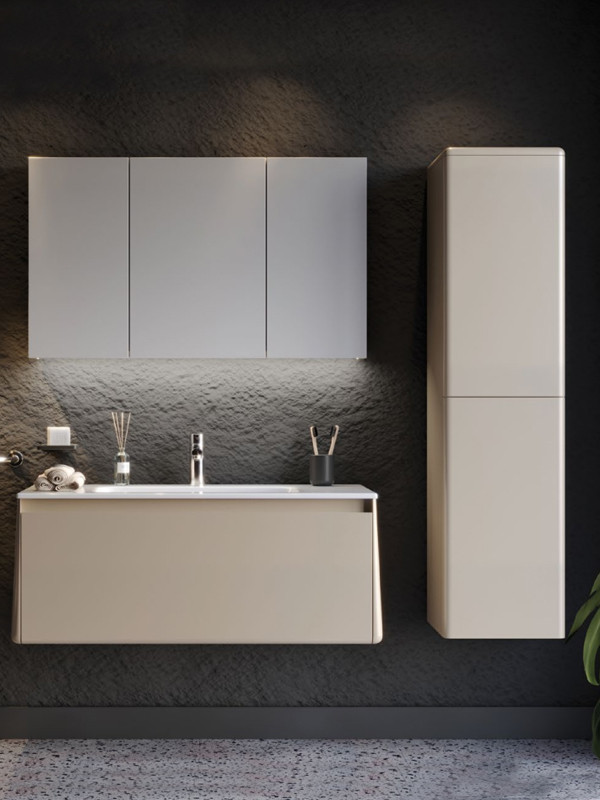 • Στήλη Μπάνιου: Aπό M.D.F. 18mm σε λάκα απαλό Μπεζ Ματ, με δύο πόρτες, με επιλογή
