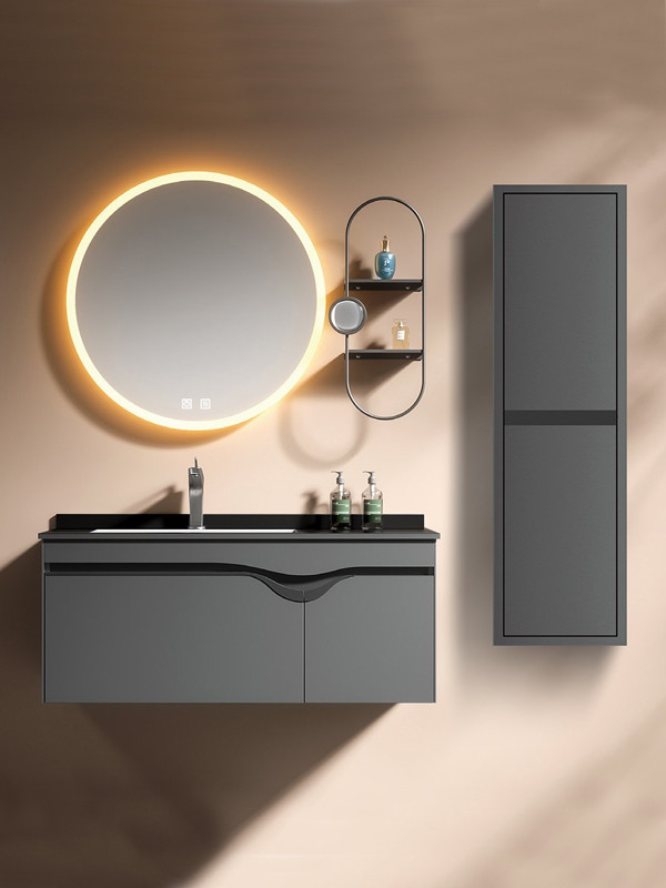 • Στήλη Μπάνιου: Aπό κόντρα πλακέ θαλάσσης χρώματος Anthracite, με δύο πόρτες, με επιλογή