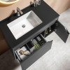 • Βάση κρεμαστή: Aπό κόντρα πλακέ θαλάσσης χρώματος Anthracite, με δύο αποθηκευτικούς χώρους, με ένα συρτάρι και ένα ντουλάπι