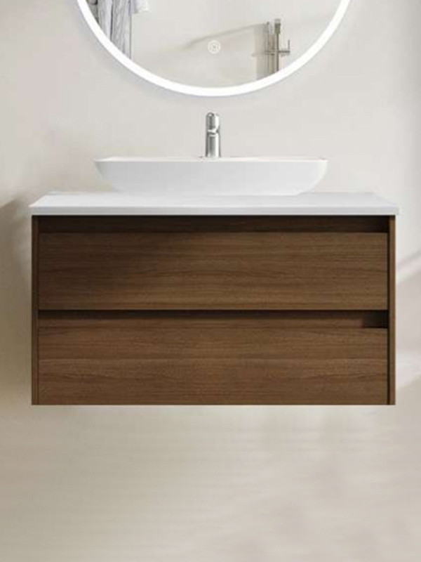 • Βάση κρεμαστή: Aπό κόντρα πλακέ θαλάσσης χρώματος Brown, με ένα αποθηκευτικό χώρο, με δύο συρτάρια