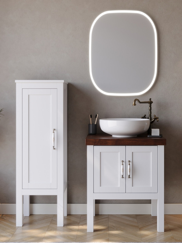 • Στήλη Μπάνιου: Aπό M.D.F. 18mm σε λάκα Λευκό Ματ, με ένα πορτάκι, με επιλογή