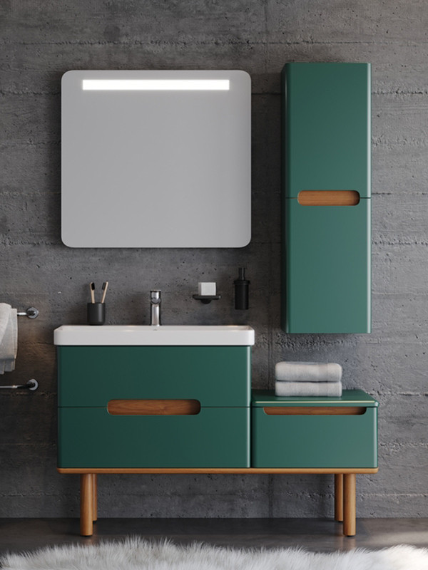• Στήλη Μπάνιου: Aπό M.D.F. 18mm σε λάκα χρώματος Dark Green, με δύο πορτάκια, με επιλογή