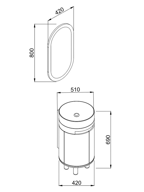 • Καθρέπτης κρεμαστός: Led φωτισμός περιμετρικά, αυτόματο άνοιγμα φωτισμού με αισθητήρα ανίχνευσης κίνησης(SENSOR)
