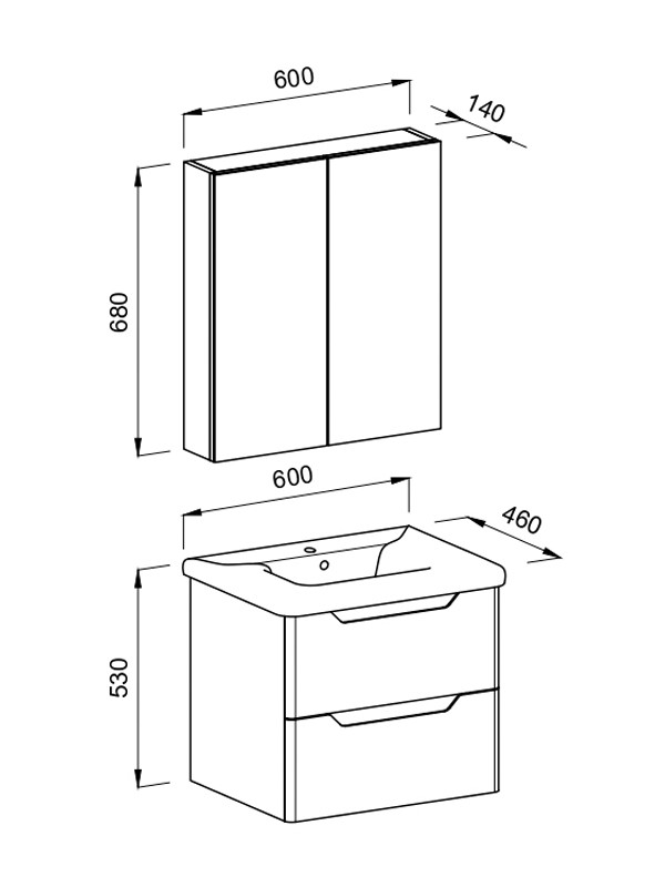 • Καθρέπτης κρεμαστός κρυφοντούλαπο: Από M.D.F. 18mm σε λάκα Matte White, πρόσοψη καθρέφτη με δύο πόρτες