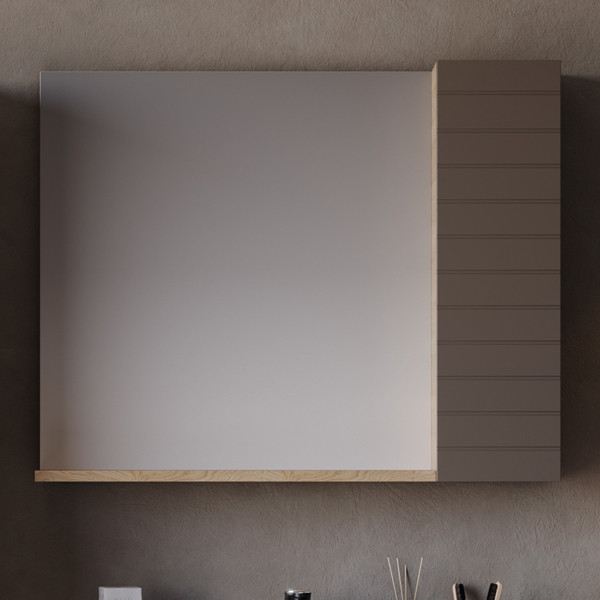 • Καθρέπτης κρεμαστός: Από M.D.F. 18mm σε λάκα Vega - Matte Brown, με ένα ντουλάπι και εταζέρα