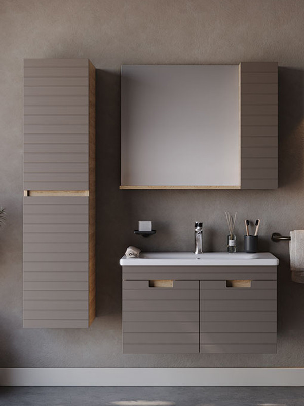 • Στήλη Μπάνιου: Aπό M.D.F. 18mm σε λάκα Vega - Matte Brown, με δύο πόρτες, με επιλογή