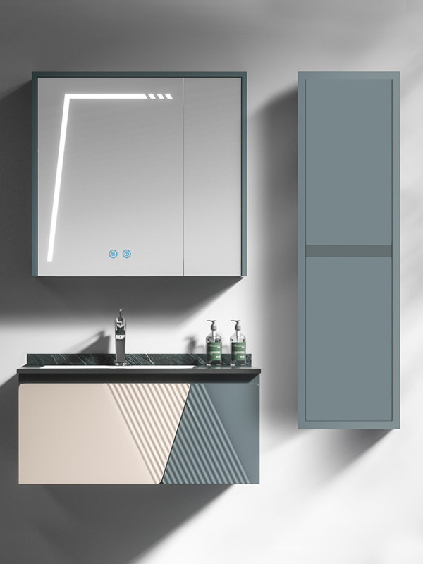 • Στήλη Μπάνιου: Aπό κόντρα πλακέ θαλάσσης χρώματος Petrol, με δύο πόρτες, με επιλογή