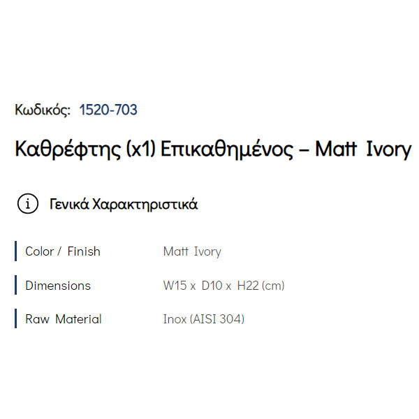 • Διαστάσεις (Μ x Y): 15 X 10 X 22 cm