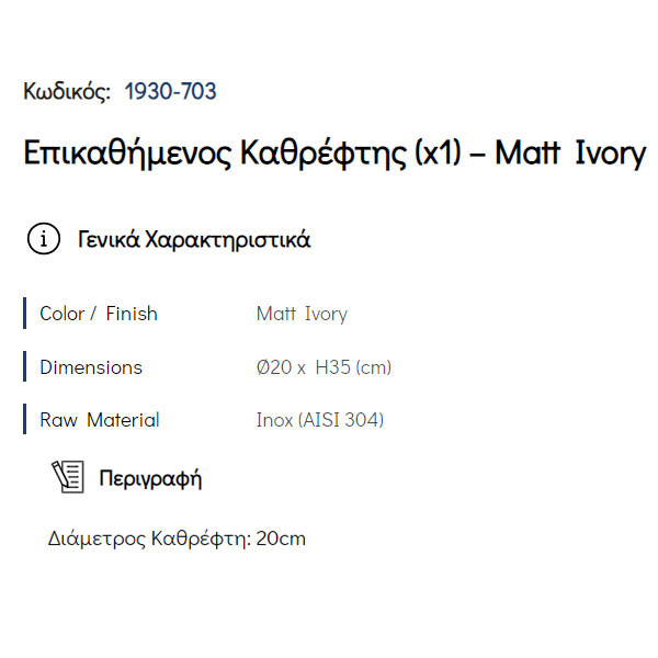 • Διαστάσεις (Μ x Y): Ø 20 X 35 cm