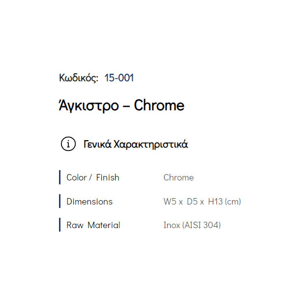 • Ποιότητα: Ανοξείδωτος χάλυβας Inox (AISI 304)