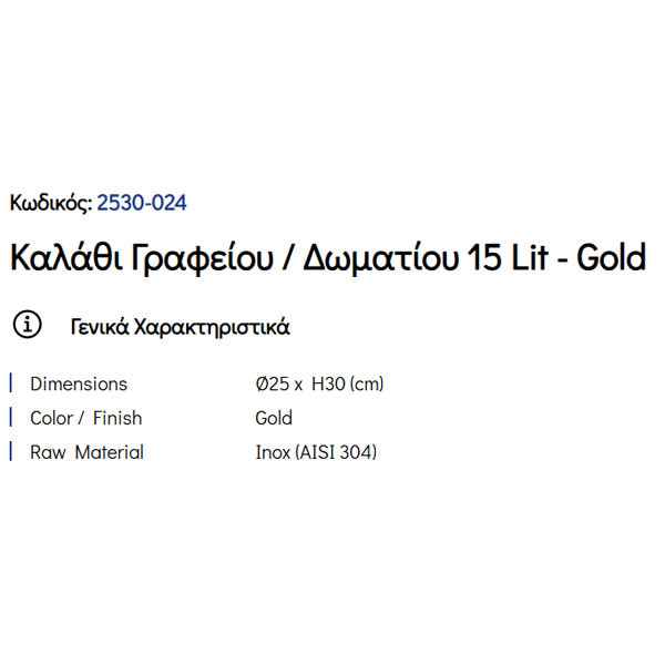 Pam Gold 2530-024 Καλάθι Γραφείου & Δωματίου